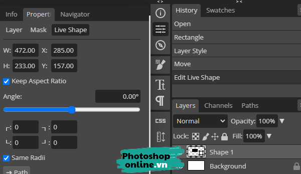 Vẽ các hình chữ nhật bo tròn góc là thao tác cơ bản, dễ làm trong Photoshop online. Thiết kế bo tròn các góc tạo sự mượt mà, uyển chuyển, rất hợp với xu hướng bo góc trên Windows 11 hay Mac OS.
