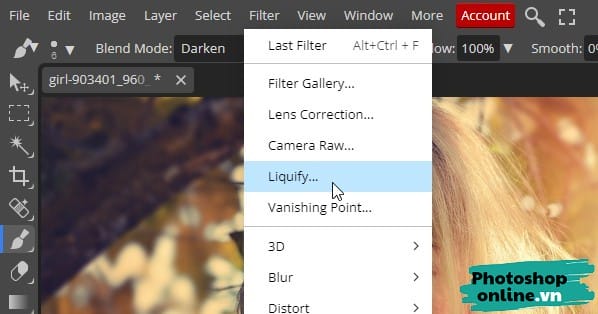 Bước 2: Đến menu chọn Filter ➜ Liquify.
