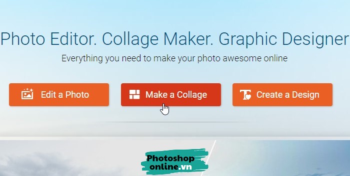 Truy cập Photoshoponline.vn/ghep-anh, sau đó bấm vào nút Make a Collage để bắt đầu.
