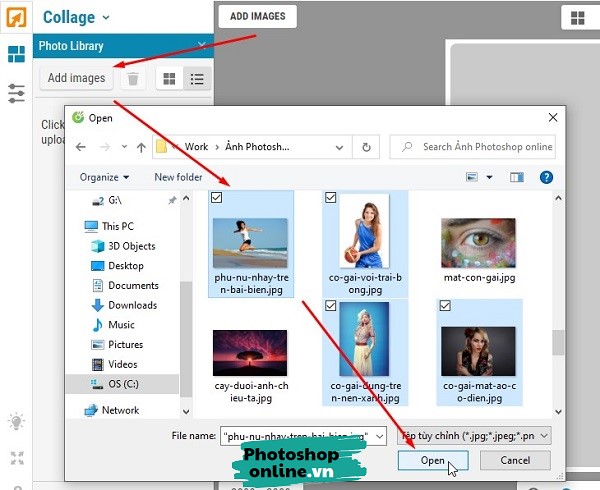 Chọn khung xong thì bấm nút ADD IMAGES ➜ Add Images ➜ Chọn tất cả ảnh muốn ghép rồi bấm Open.