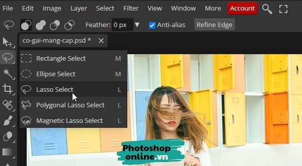 Bước 2: Nhấp chuột phải vào Rectangle Select ➜ Chọn Lasso Select.