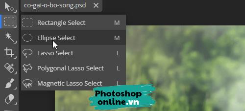 Bước 2: Nhấp chuột phải vào Rectangle Select ➜ Chọn Ellipse Select.