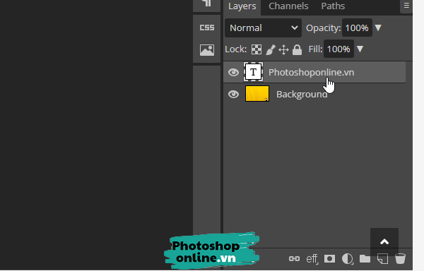 Bước 1: Bạn cần chọn layer chữ chữ vừa chèn tại phần Layers.
