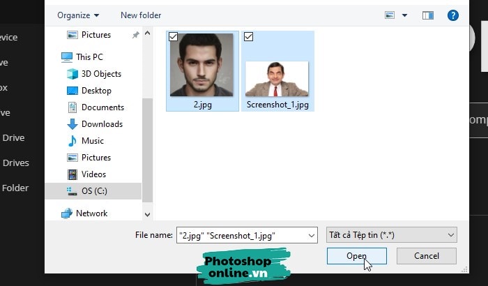Mình muốn lấy mặt Mr.Bean ghép vào ảnh một người đàn ông khác, vậy nên mình sẽ mở tab có ảnh Mr.Bean.