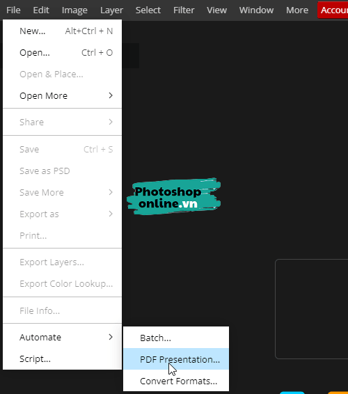 Tiếp đó đến menu chọn File ➜ Automate ➜ PDF Presentation.