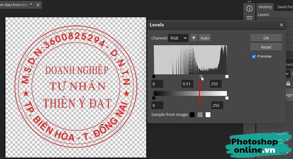 Tăng độ đậm cho con dấu sau khi tách nền