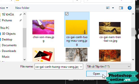 Bước 3: Hộp thoại Open sẽ xuất hiện, tại đây bạn hãy tìm đến thư mục chứa ảnh muốn sửa ➜ Chọn ảnh ➜ Bấm Open.