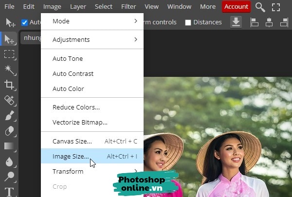 Giảm kích thước ảnh bằng Photoshop online