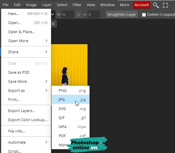 Bấm File ➜ Export as ➜ Chọn định dạng JPG hoặc bất kỳ định dạng nào bạn muốn lưu.
